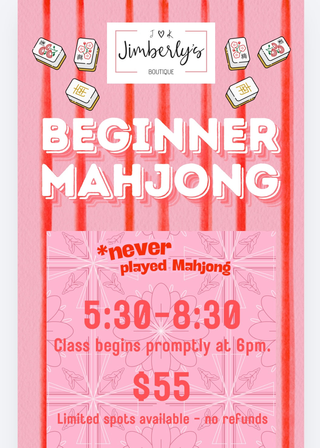 Sign up for our Beginner Mahjong Class held at Jimberly’s Boutique located in Old Towne Olive Branch.