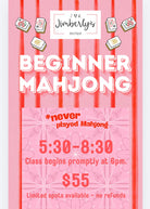 • Mahjong instruction begins promptly at 6:00 p.m. (please arrive on time so you don’t miss important instruction) until 8:30 pm.