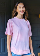 The soft vintage wash and curved hemline give this tee a laid-back, contemporary feel while maintaining a flattering silhouette. Made from a premium cotton-blend fabric, it features a smooth exterior and ultra-soft feel that makes it perfect for everyday wear.