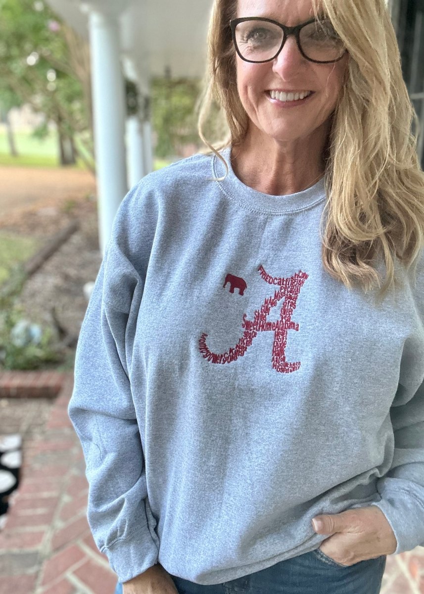 Alabama A w Elephant Embroidered Sweatshirt - Grey w/Crimson