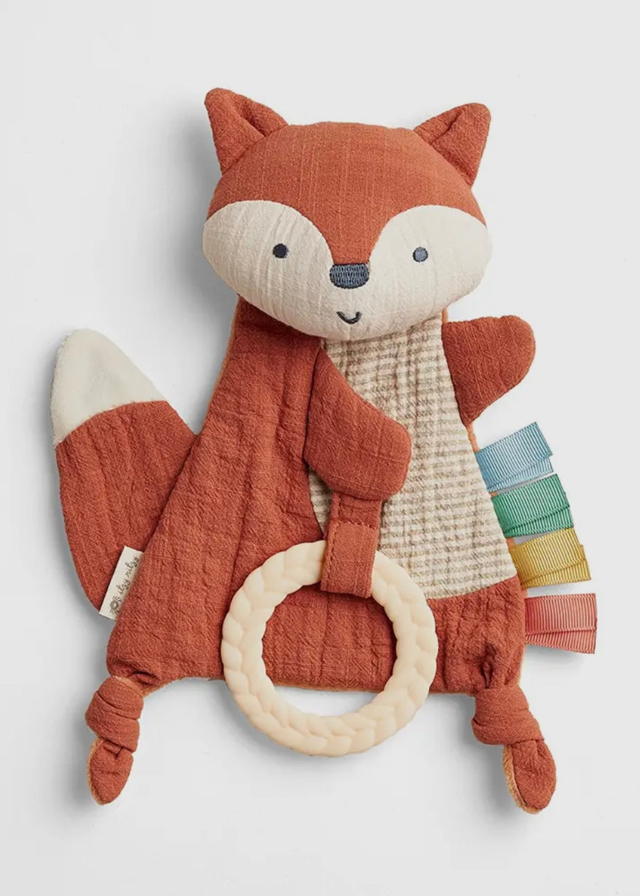Crafted from soft, natural cotton fabric and adorned with textured ribbons, the Bitzy Crinkle™ is perfect for tactile and auditory stimulation. The included braided teether offers relief for sore gums, making this toy a multifunctional must-have for babies.