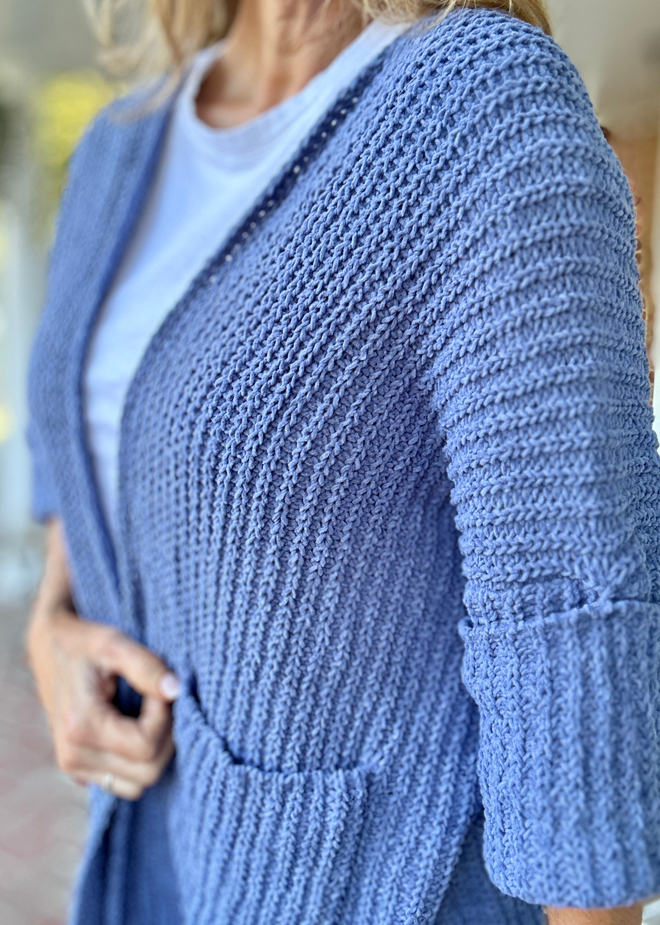 Experience cozy comfort and effortless style with the POL Oversized Chunky Cardigan Sweater in Lapis Blue. Featuring an edge-to-edge design, long roomy fit, and convenient pockets, this cardigan is perfect for any occasion. Crafted from soft, 100% polyester fabric, it boasts 3/4 length cuffed sleeves for a touch of sophistication. With a total length of 25-1/2" and a chest measurement of 29-1/2", this cardigan is the perfect addition to your wardrobe. Don't miss out on this must-have piece!
