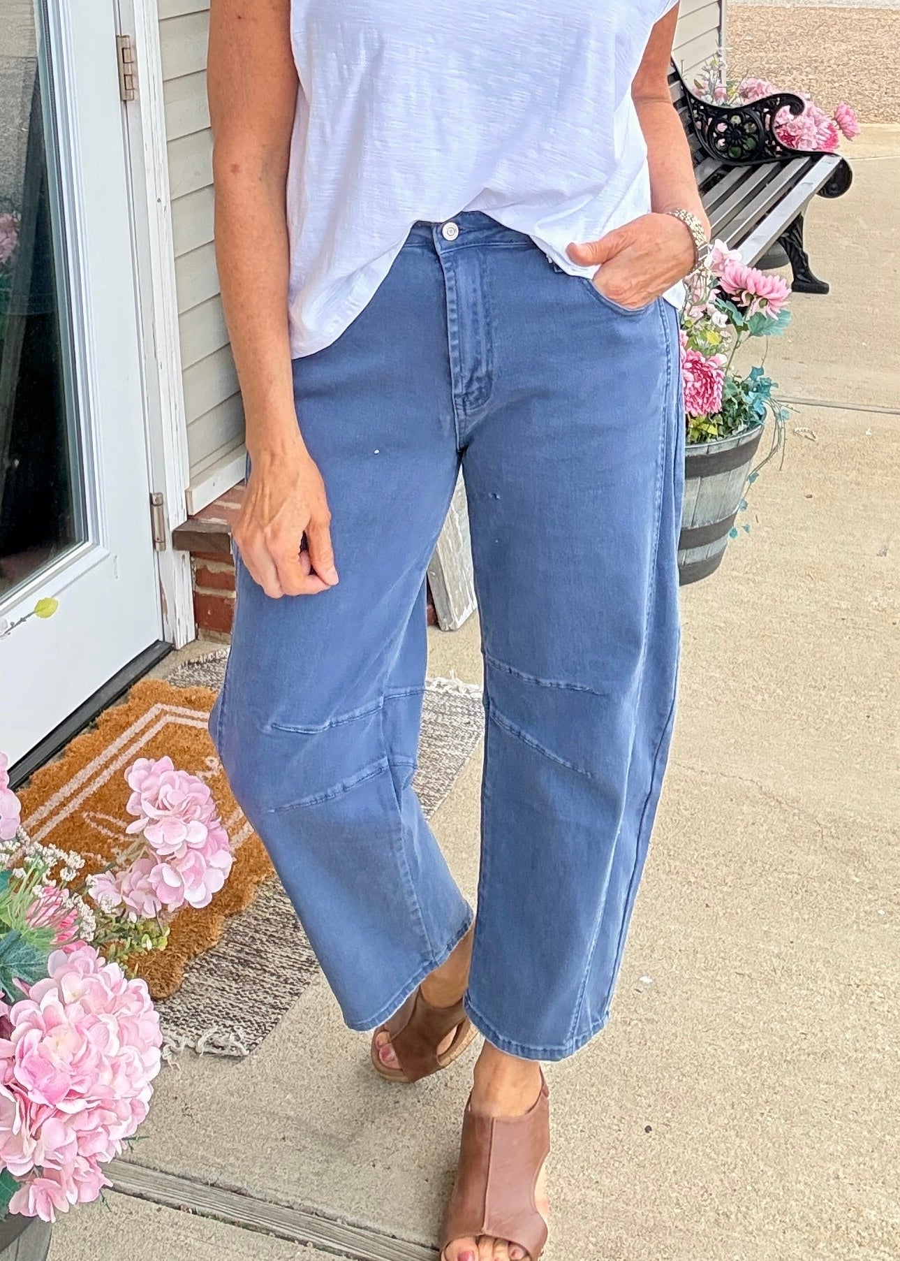 Elevate your denim collection with the Barrel Leg Color Denim Pants in Blackberry by Zenana, available at Jimberly’s Boutique in Olive Branch, Mississippi. Designed with a modern barrel-leg silhouette, these stylish colored jeans offer a relaxed yet flattering fit that’s right on trend.