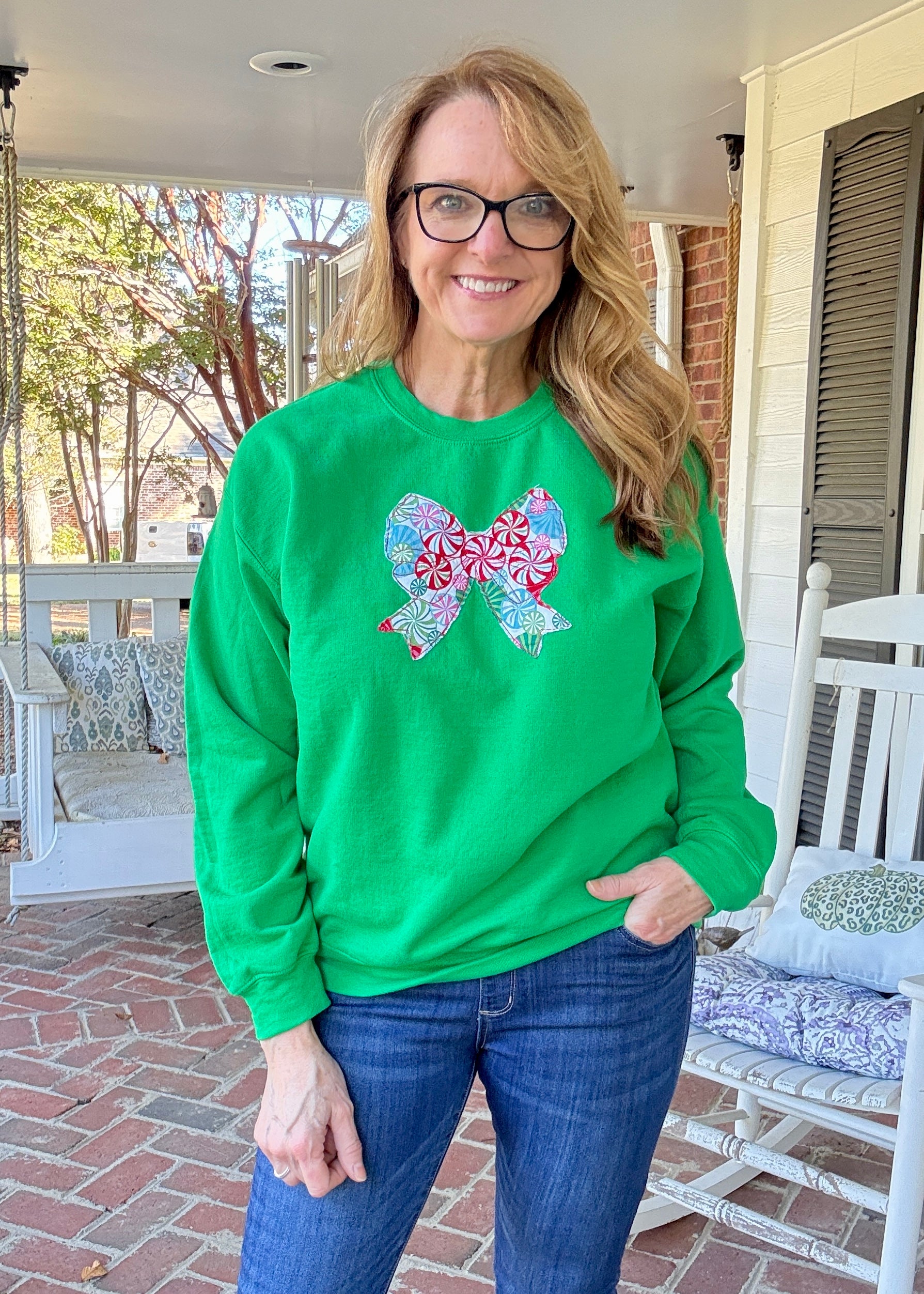 Christmas Candy Raggy Applique' Bow Sweatshirt