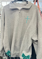 Grey w/Teal Cross Of Nails Glitter Side Bows Cadet Quarter-Zip Pullover