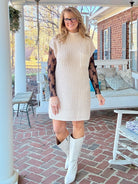 Slip into effortless style with this charming mock neck sweater dress. Featuring a practical chest pocket and short sleeves, it's perfect for layering or wearing solo. Crafted from 100% cotton for all-day comfort, this piece measures 33" in total length with a 40" chest (based on size small). A versatile wardrobe essential that works as hard as you do. This dress does have a roomy fit.