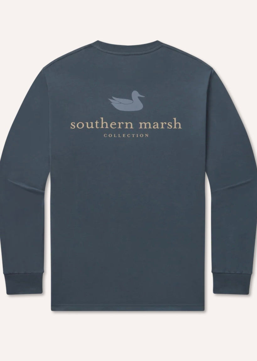 A true Southern classic, the Southern Marsh Authentic Long Sleeve Tee in Arlington Blue is one of the brand’s most iconic staples. Featuring the signature Southern Marsh mallard silhouette logo across the back and the Authentic logo on the front pocket, this timeless tee combines everyday comfort with authentic Southern style.