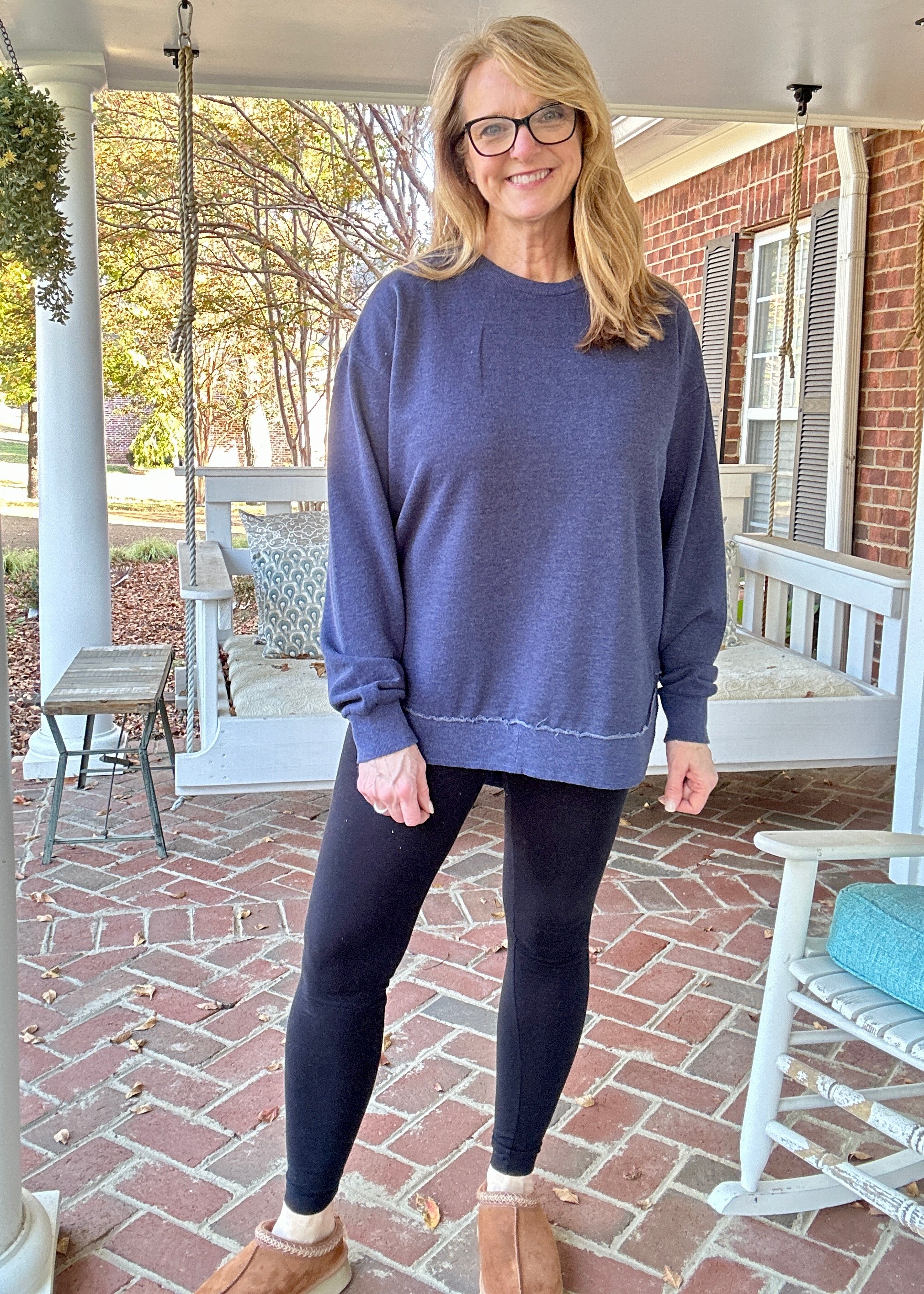 Royce Mélange Poncho Long Sleeve Hi-Lo Fleece - Navy