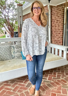 Whisked Away Floral V Neck Peplum Top - Silver